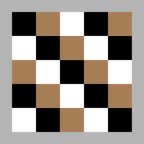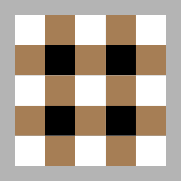 Another design inspired by textiles, the gingham pattern is perfect for those who like the look of a checkerboard dance floor but want to incorporate another color into the panels. This design works great on a 20’x20′ dance floor, requiring 4 panels in one color, 9 panels in a second color, and 12 panels in a third color. This pattern can be scaled easily, but it works best a length and width made of odd numbered panels (5×5, 5×7, 7×7, etc.).