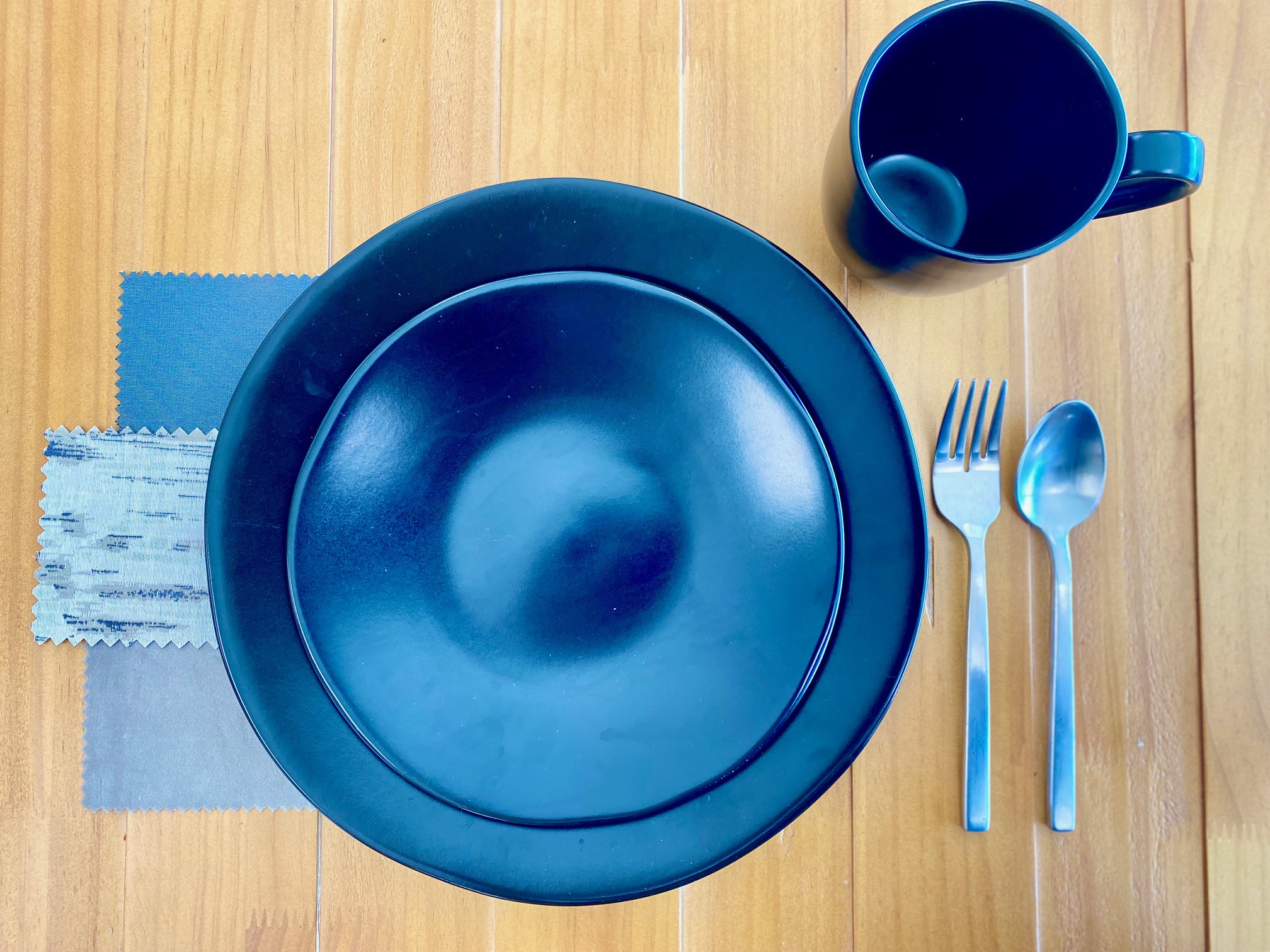 Fall is the season for harvest festivals, hayrides, and bonfires, and this look is inspired by that warm feeling at the end of the night when the fire has burned down to embers. Our main cloth for this look is a textured black and gray linen that resembles charcoal with a light coating of ash (BBJ Meteor). This linen pairs beautifully with gray velvet and charcoal accents. For tableware, we chose our new charcoal plates and mug, and we added our silver arezzo flatware to complete the look. To style this look, choose black and silver accent pieces with moody black and orange floral arrangements. Finish it off with actual firelight by adding burning candles in slender candlesticks.