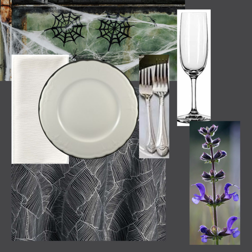 While not necessarily a monster and certainly not strictly tied to Halloween, the spider is, regardless, a staple fixture in Halloween decor. One thing that seems common across the aesthetic of every other monster is the inescapable presence of cobwebs. Cobwebs in the corner of the room, strung across furniture, and catching the light of a flashlight is one sure way of driving it home to an audience that a place is old, abandoned, and altogether spooky. For this spider inspired look, we chose a black and white patterned linen that is reminiscent of a spider’s web (BBJ Saint Barths) and paired it with silky white napkin (BBJ Crest Snow). We chose our white scalloped dinner plate to accentuate that delicate feel and finished the place setting with our silver plaza flatware and a tall, thin champagne flute. For florals, we believe an arrangement of long, thin, and vibrant flower clusters like salvia would be appropriate.
