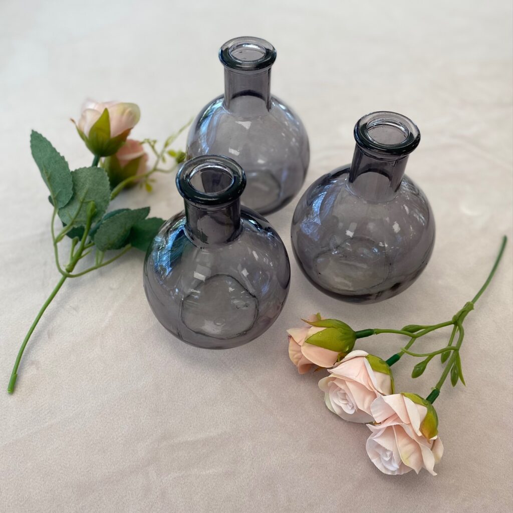 A small but mighty item we added to our stock this year are these adorable black glass bud vases. These little vases are perfect for placing individual flower stems at each of your guest’s seats or for creating a sleek minimalist floral arrangement.