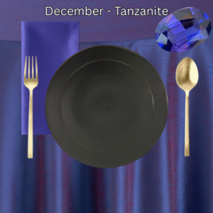 December is the last month of the year, and it has a birthstone with just the right amount of pizzazz to mark the year’s end. This dark, rich stone can look almost black in shadow, but in the light the deep blues and violets of this gemstone are dazzling. For the tanzanite-inspired place setting, we chose the stunning BBJ Dupionique Iridescence Grape which shifts in the light from blue to purple. We brought out more of the violet-blue tones in the napkin by choosing Lamour Purple, then chose a sleek and modern charcoal china set to call back to the stone’s darkness and depth. Gold Arezzo flatware finishes the look with a bit of contrast and modern elegance.