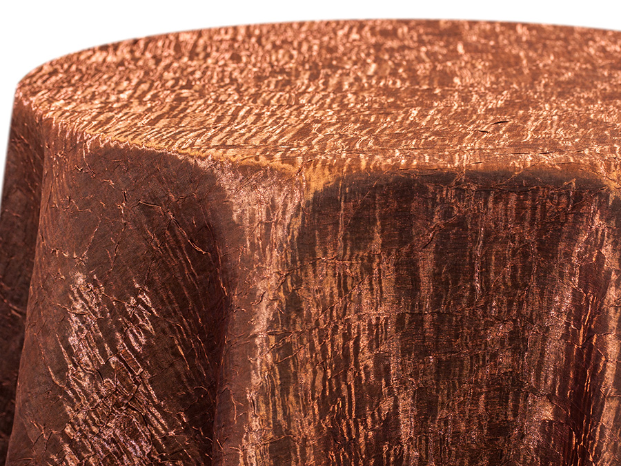 Iridescent Crush is a lightweight linen made by weaving shiny fibers over the top of matte fibers. This, combined with the crushed texture of the linen, creates a unique iridescent effect that catches the light and shifts it around with movement. Iridescent Crush is available in multiple sizes of round and rectangular tablecloths, as well as toppers, runners, and sashes. Pricing is subject to availability.