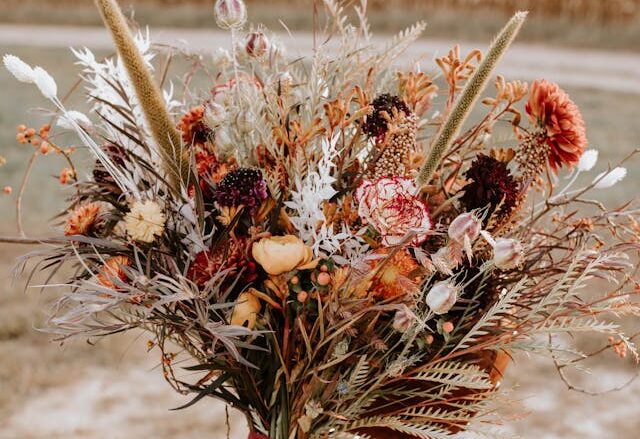 The pampas grass craze may be on the downward trend this year, but dried bouquets are thriving in the fall season! Preserved peonies, roses, and hydrangeas are making waves in the fall bouquet scene, as well as dried rosehips, strawflowers, amaranth, and yarrow. Bouquets and arrangements are moving away from the overly structured looks and embracing natural, organic, textured looks. Also prevalent this season are dried fruits, berries, and seed pods, adding a nod to the harvest season without being overtly rustic.